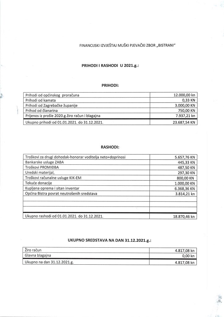 Financijski i programski izvještaj za 2021. godinu