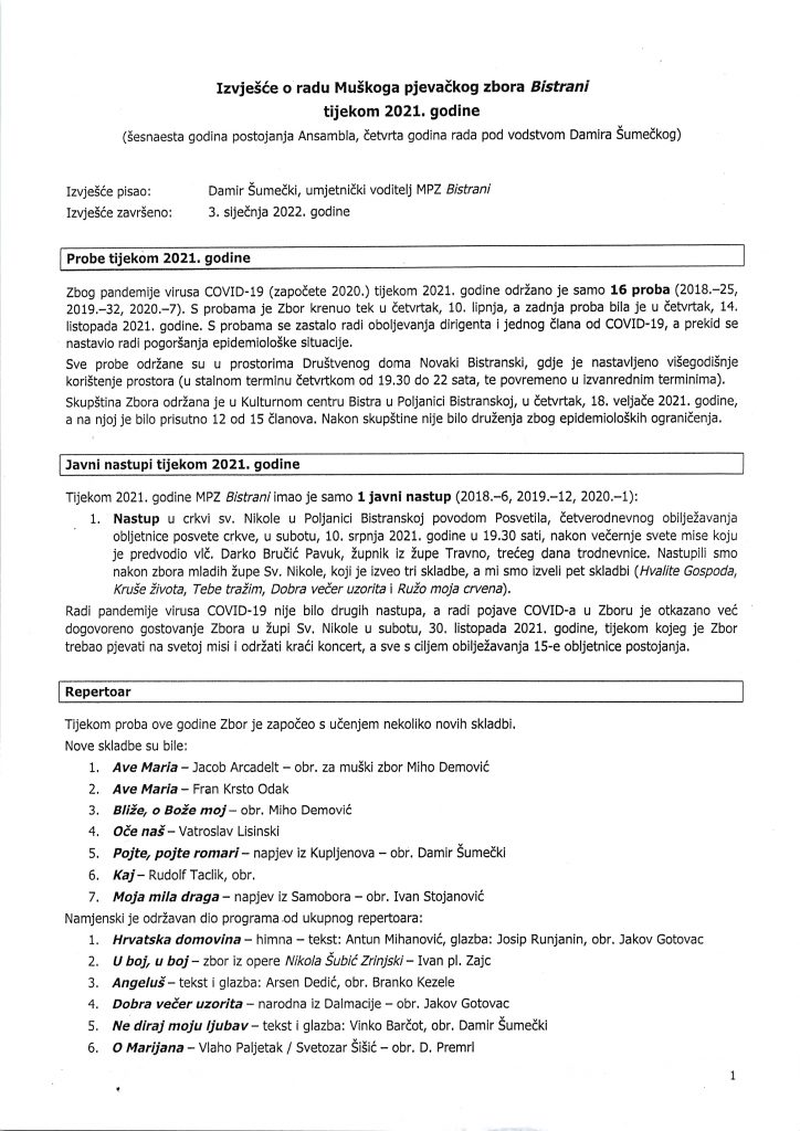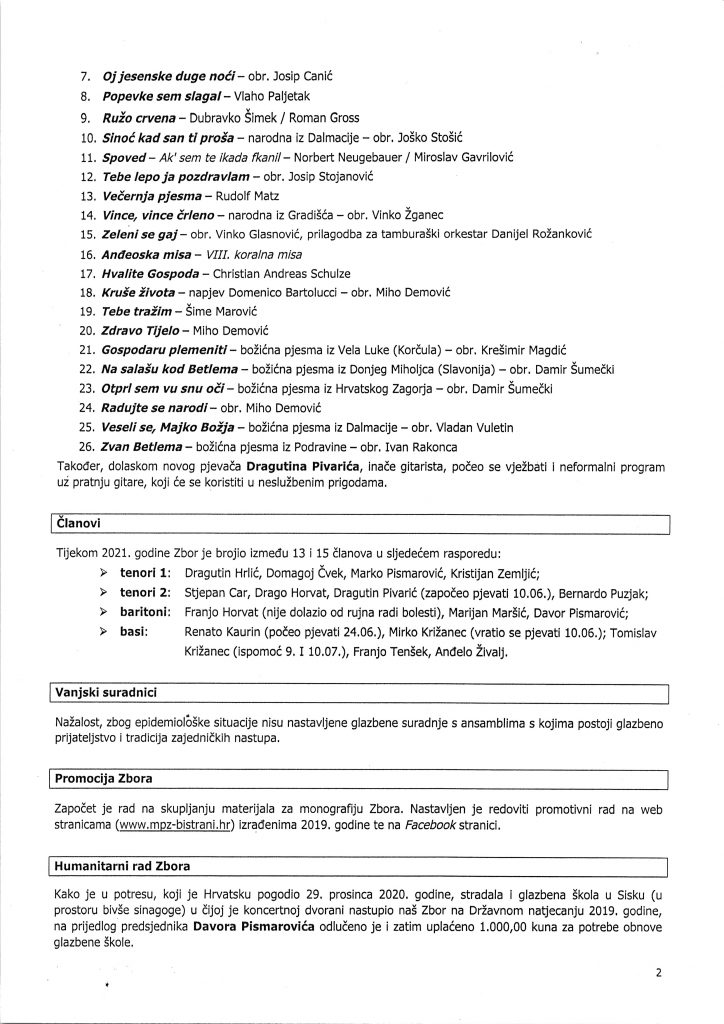Redovna izborna skupština MPZ Bistrani
